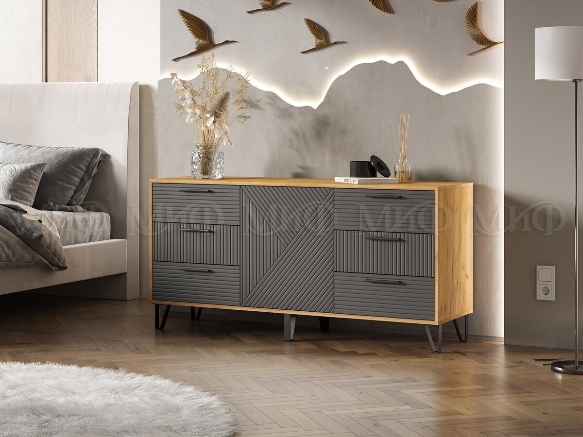 - Комод (1500) Флэш Браш Графит, Дуб Крафт