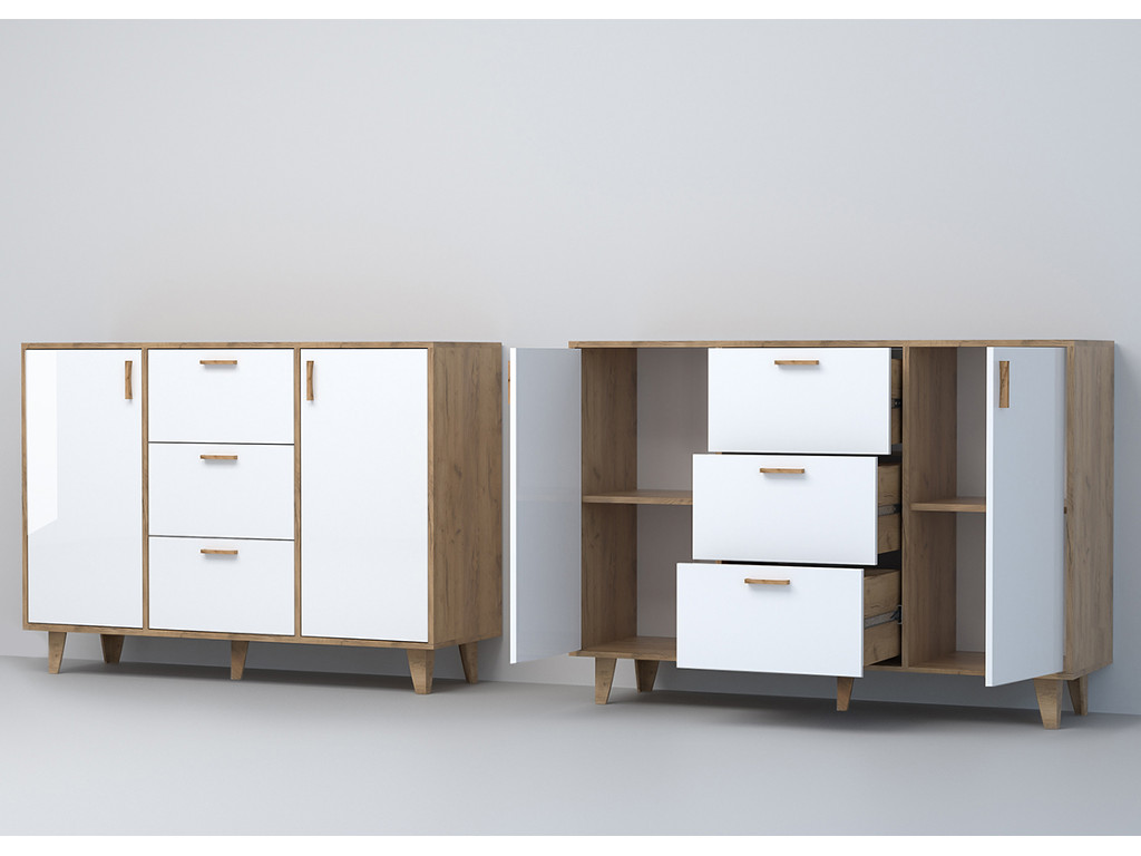 - Комод Эго К-2 2 ящика дуб крафт золотой/белый глянец на ножках