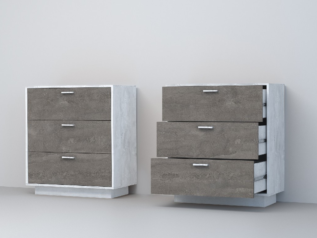 - Комод Эго К-3 3 ящика бетон светлый/камень темный на цоколе