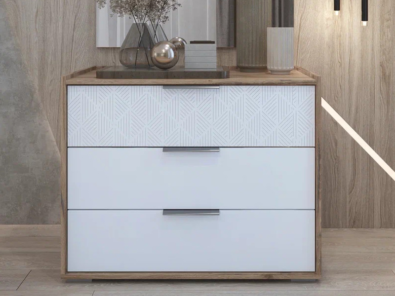 - Комод имеет три выдвижных ящика на шариковых направляющих полного выдвижения;