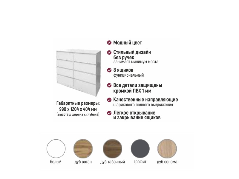 Цвета: Белый, графит, дуб вотан, дуб сонома, дуб табачный