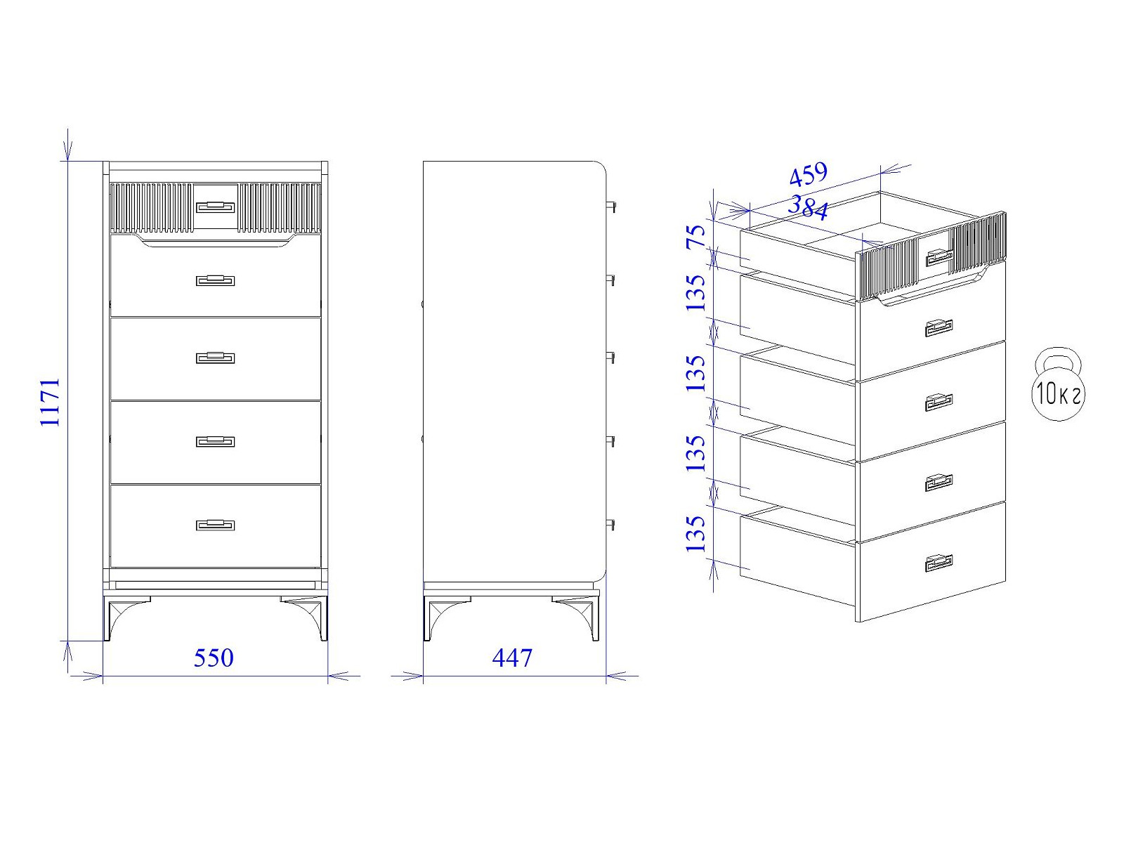 Макс.нагрузка на ящик (кг): 10