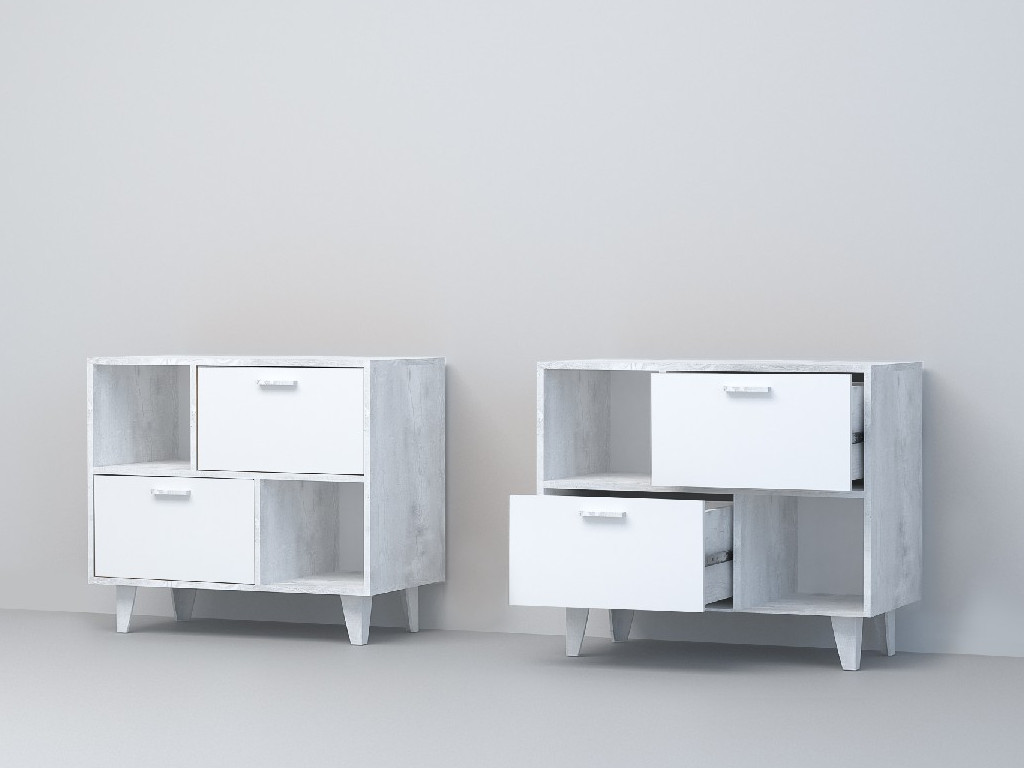 - Тумба Эго Т-1 2 ящика бетон светлый/белый глянец на ножках