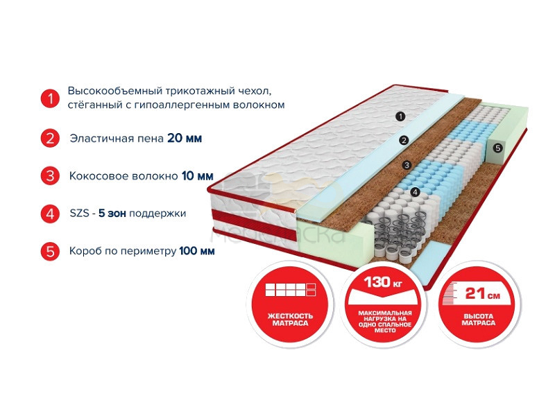 Наполнение: Пружинный блок SZS™ (Sarma Zone Spring) - 5 зон - 512 пружин на спальное место