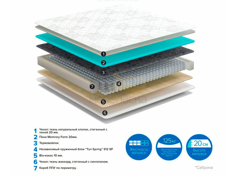 - Матрас Sabrina No Flip ширина 1600