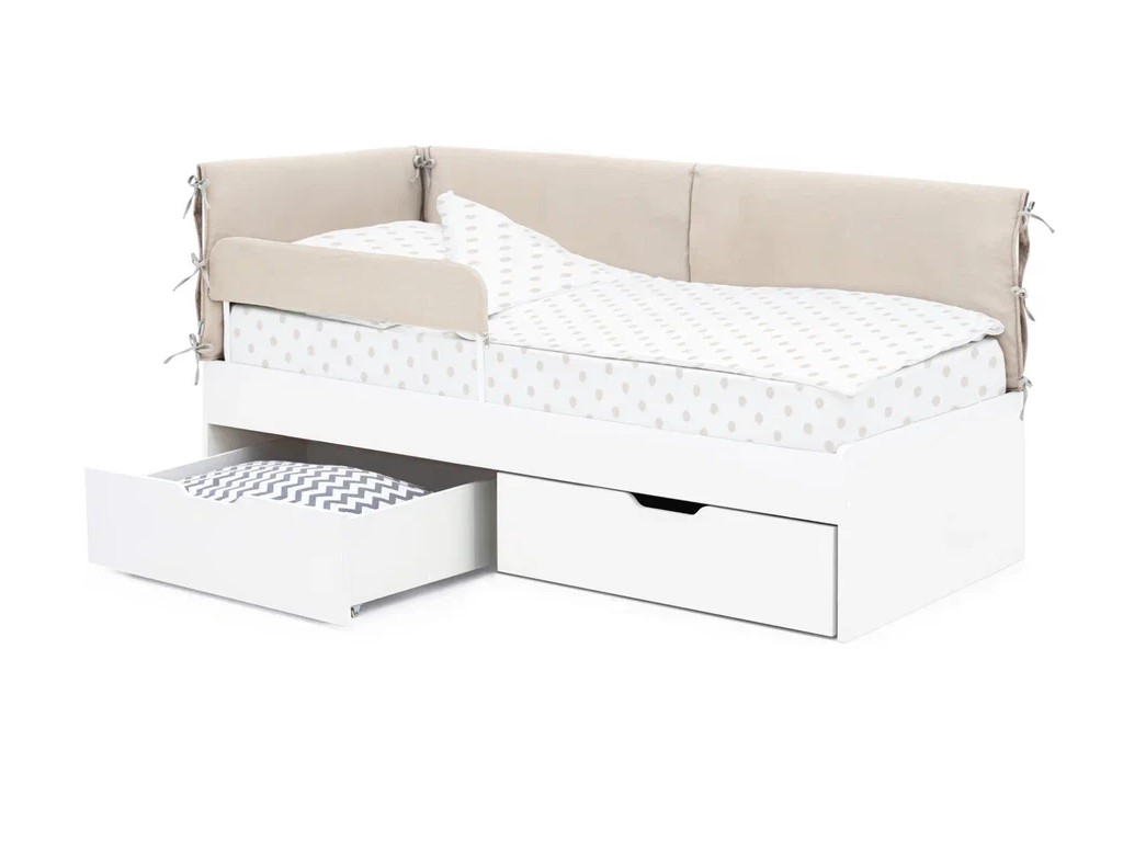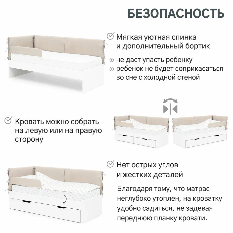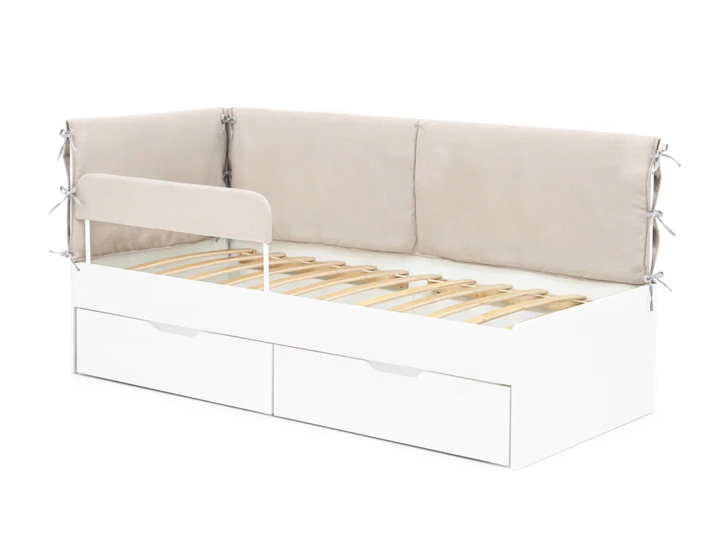 Детская мягкая кровать Denvas с бортиком и ящиками холодный бежевый
