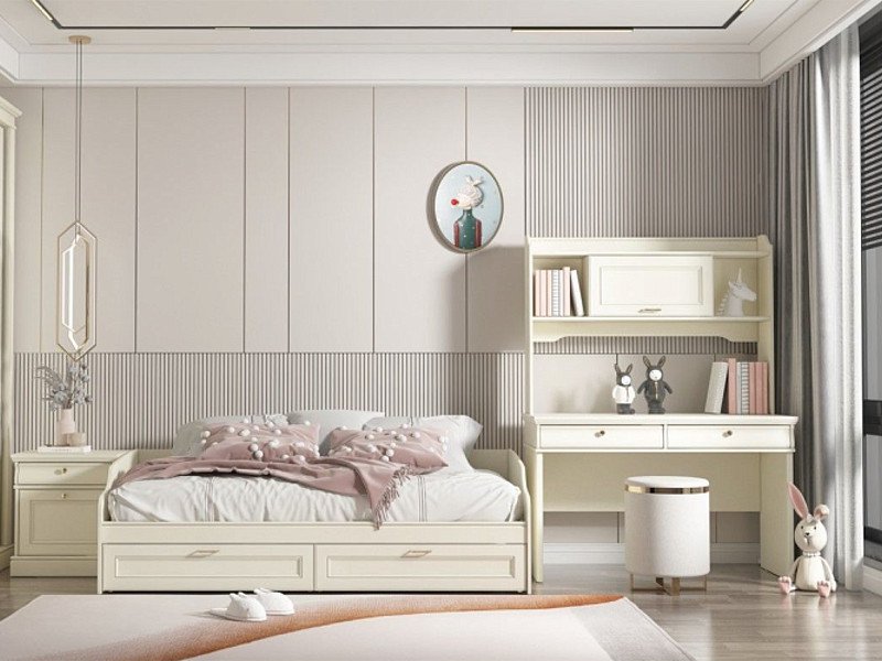Цена за комплект: Тумба прикроватная, Кровать с ящиками, Стол письменный,Надстройка