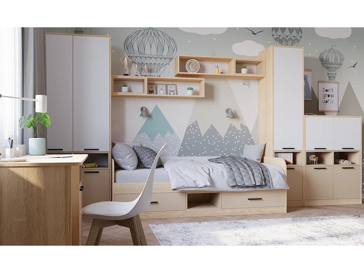 Цена за комплект: Пенал, Кровать, Комод, Шкаф, Стол, Полка (2 шт)