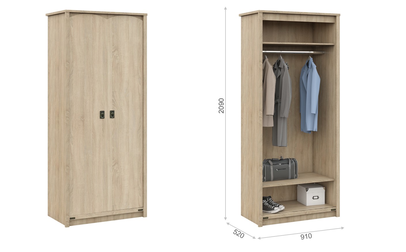 - Шкаф 2-х дверный 910*520*2090 мм - 18360 руб
