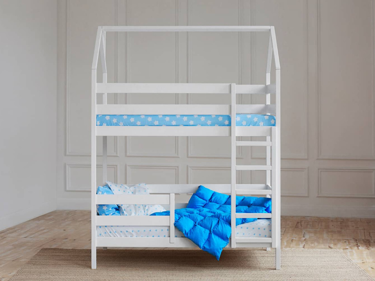 - Двухъярусная кровать-домик белый 80х160 см