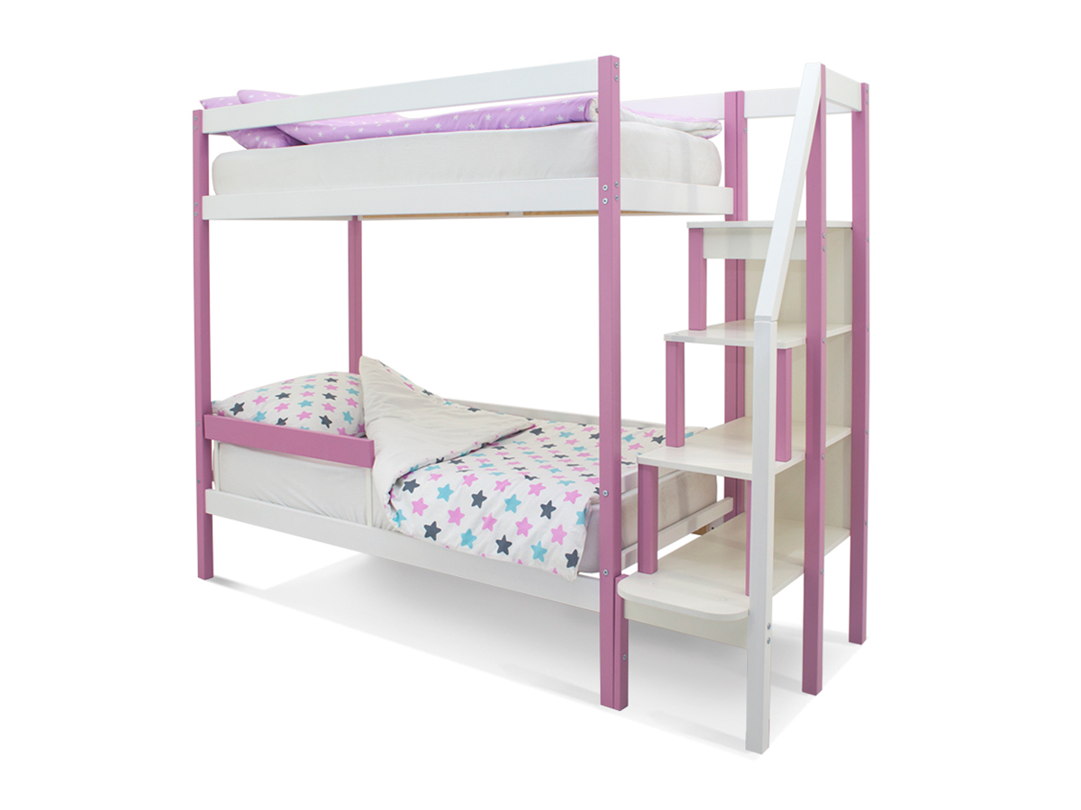 Двухъярусная кровать Svogen с бортиком лаванда-белый