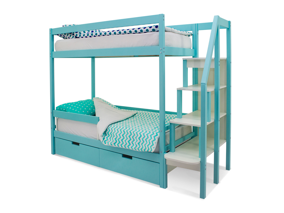Двухъярусная кровать Svogen с ящиками и бортиком мятный