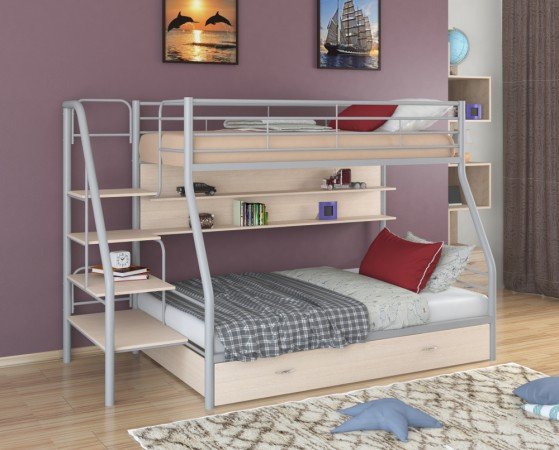 - Двухъярусная кровать Толедо 1 ПЯ серый молочный