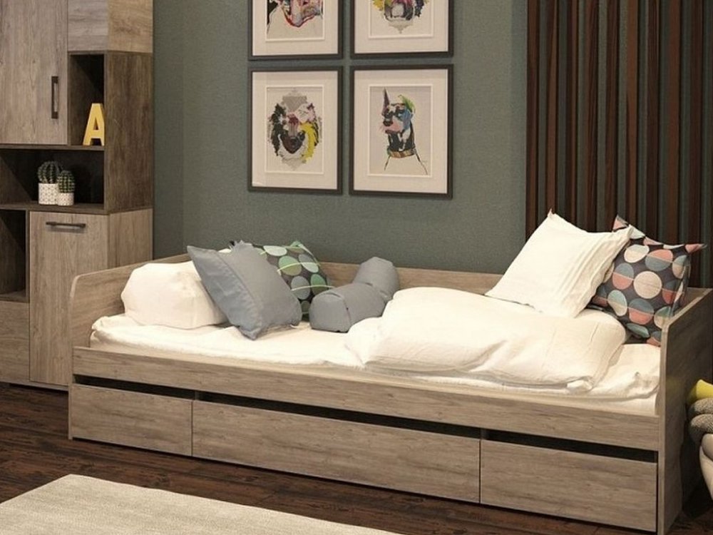 - Кровать 900 с ящиками Денвер Риббек серый