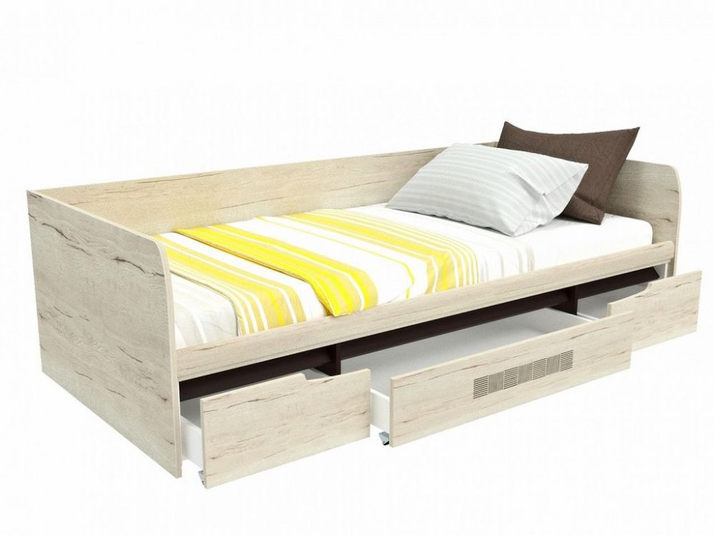В кровати Мале расположены три бельевых ящика на выкатных роликах.