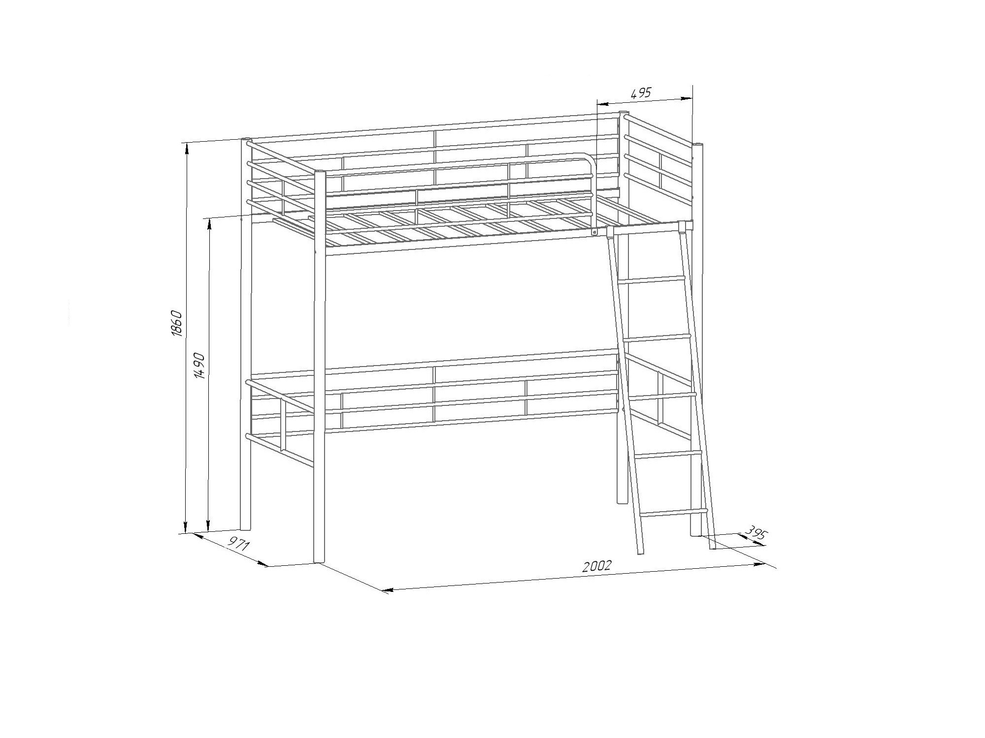Ширина верхнего спального места: 900х1900 мм