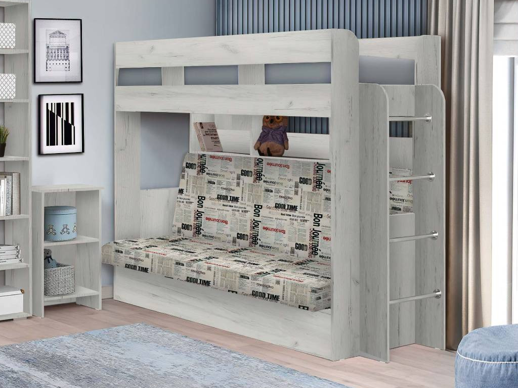 - Компактный и функциональный вариант. Максимальная нагрузка кровати на втором ярусе: 60 кг, дивана: 170 кг.