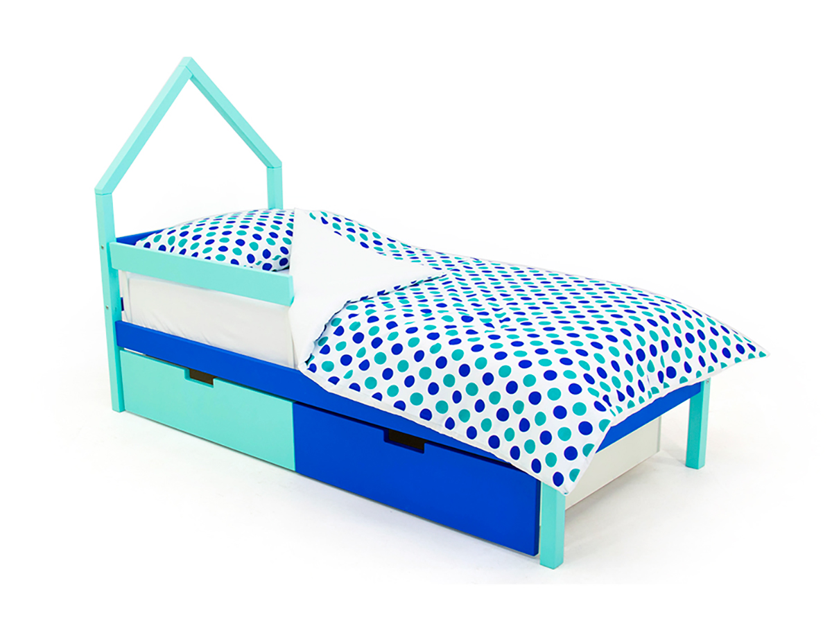 - Кровать-домик мини Svogen с ящиками и бортиком мятно-синий
