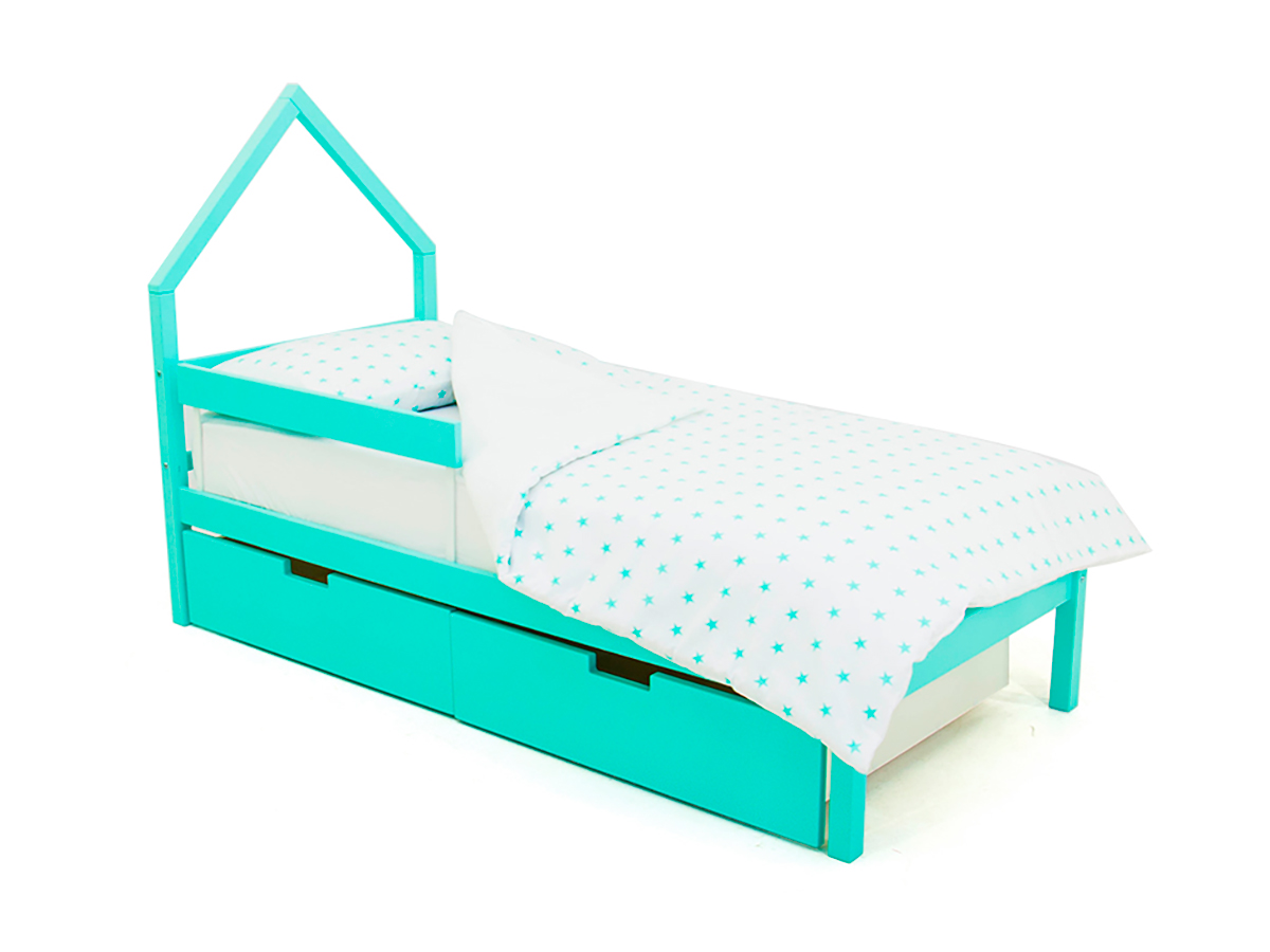 - Кровать-домик мини Svogen с ящиками и бортиком мятный