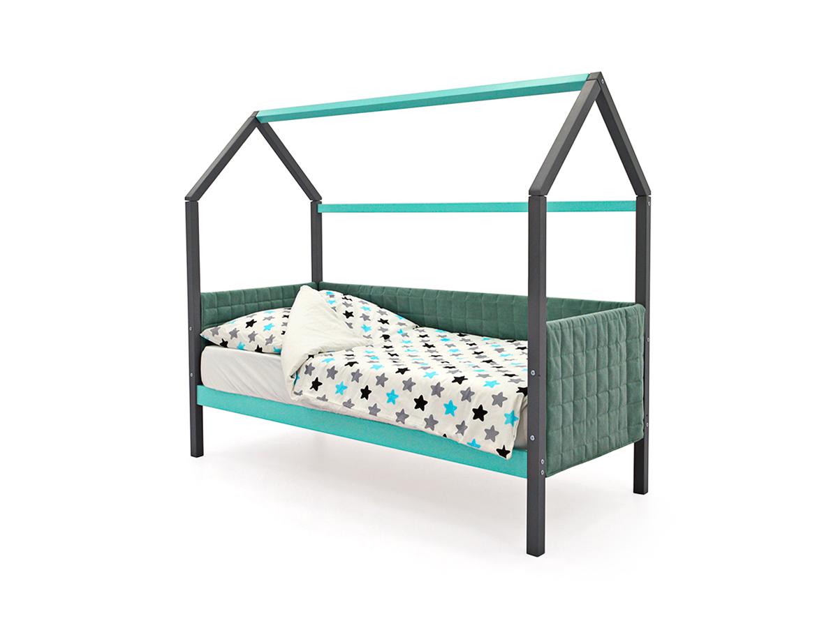 Кровать-домик мягкий Svogen графит-мятный