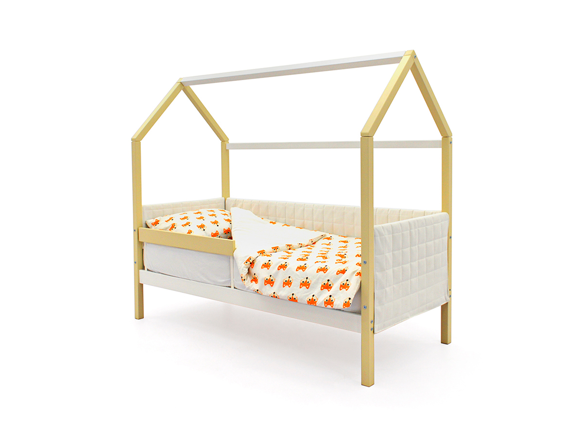 Кровать-домик мягкий Svogen с бортиком бежево-белый