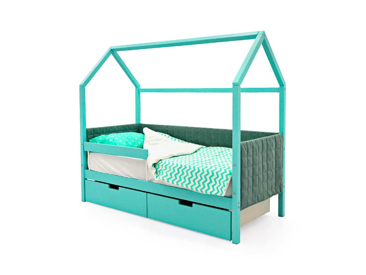 - Кровать-домик мягкий Svogen с ящиками и бортиком мятный