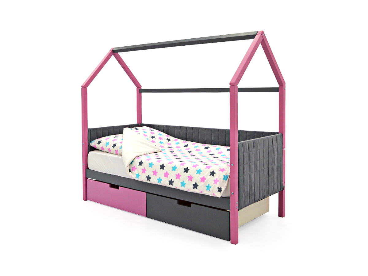 - Кровать-домик мягкий Svogen с ящиками лаванда-графит