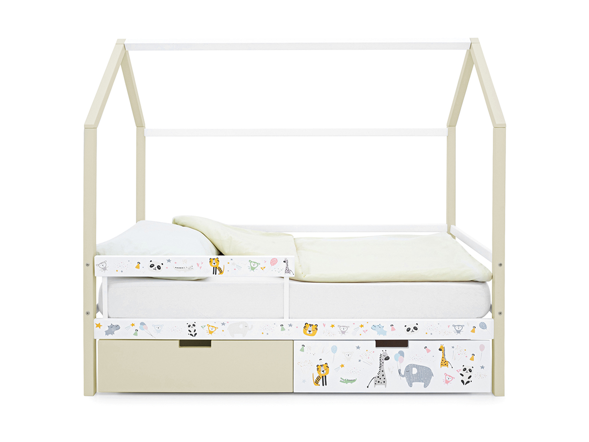 Кровать-домик Svogen с фото с ящиками и бортиком бежевый/зверята