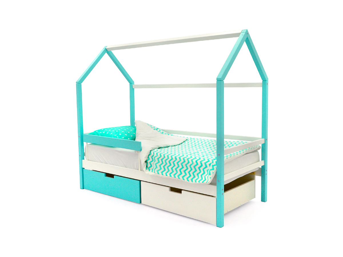 - Кровать-домик Svogen с ящиками и бортиком мятно-белый