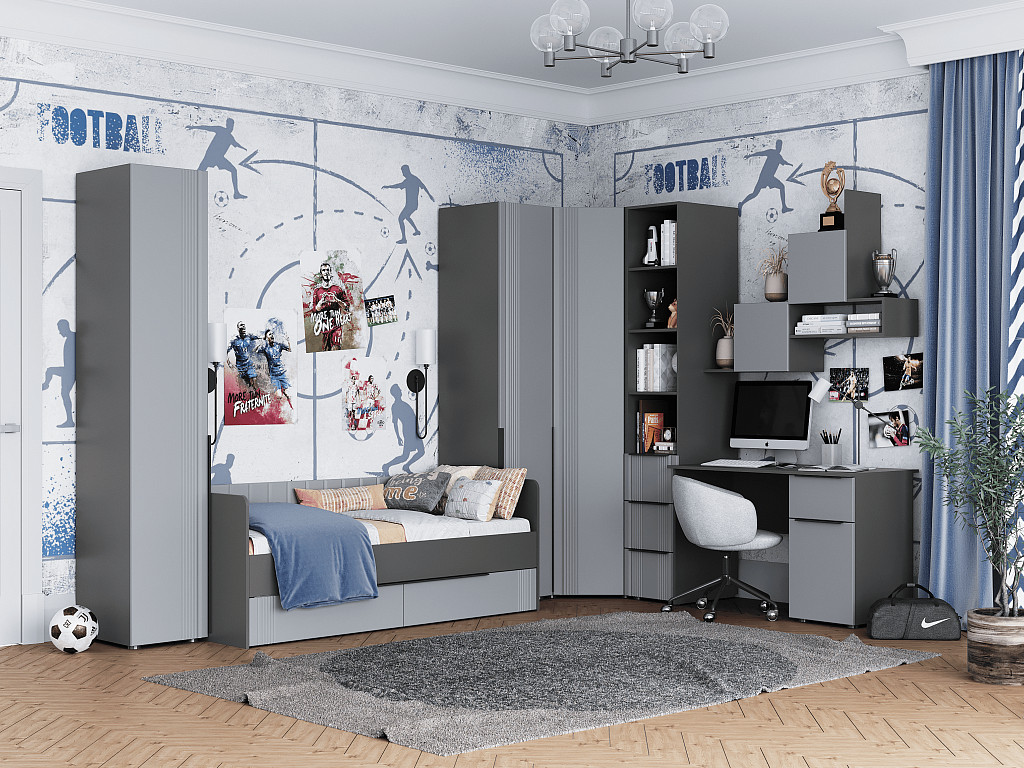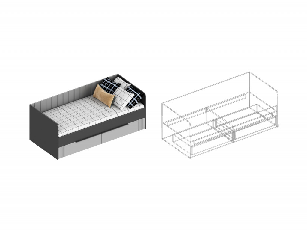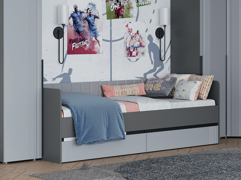 - Кровать с 2 ящиками Вита тёмно серый лофт