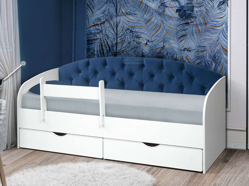 - Кровать с мягкой спинкой Софа №9 синяя с бортиком 800х1600