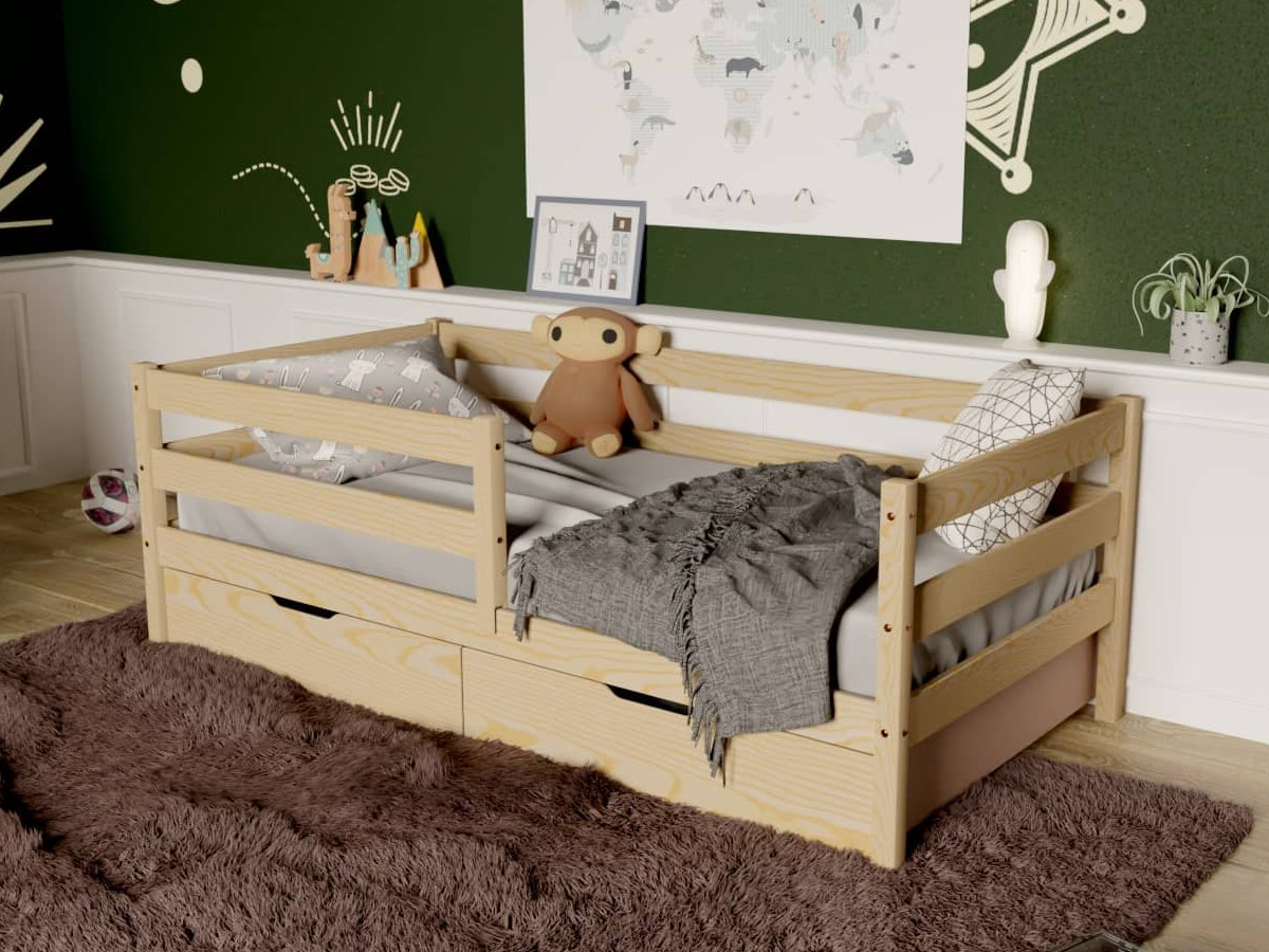 - Кровать-софа детская с бортиками без покраски 80х160 см с ящиками