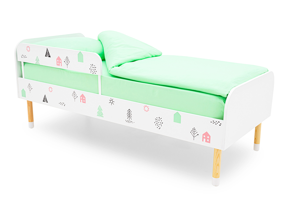 - Кровать Stumpa Классика с бортиком рисунок Домики розовый, бирюзовый