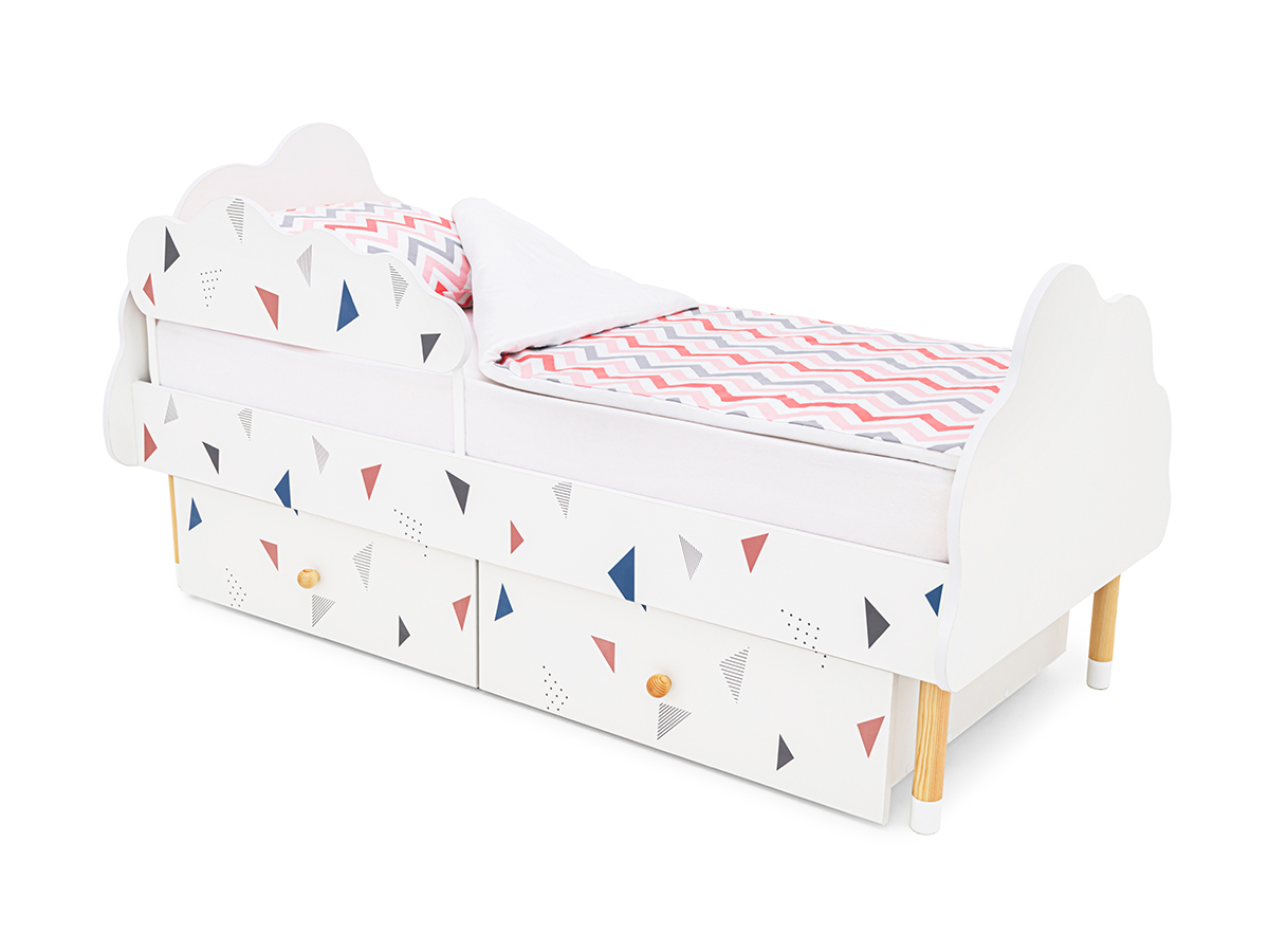 Кровать Stumpa Облако бортик и ящики рисунок Треугольники розовый, синий