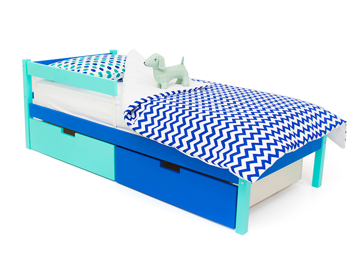 - Кровать Svogen classic с ящиками и бортиком мятно-синий