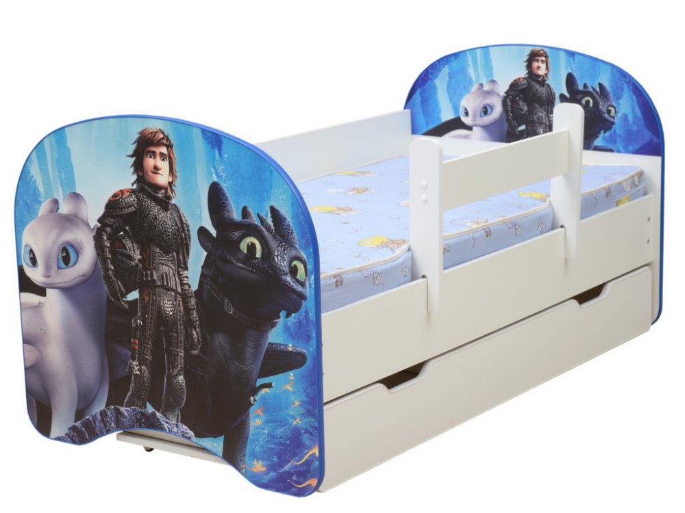 - Кровать детская с фотопечатью с 1 ящиком Драконы