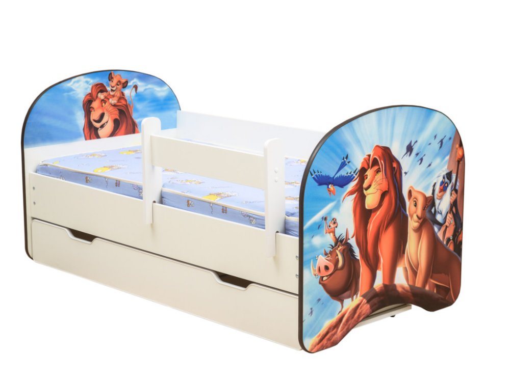 - Кровать детская с фотопечатью с 1 ящиком Царь зверей