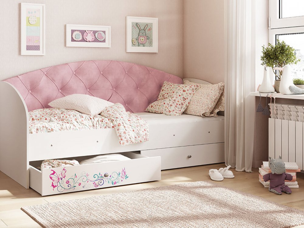 - Кровать Эльза Белый-розовый