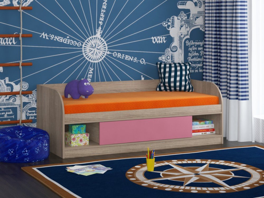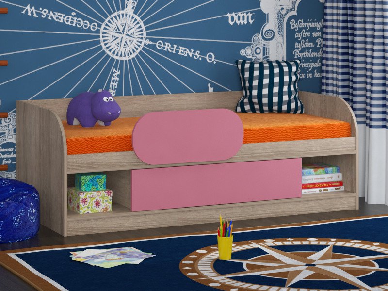- Кровать Соня 4 сонома-розовый