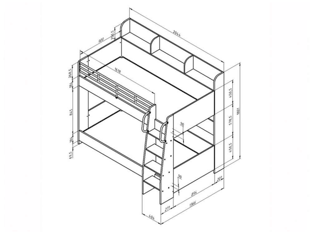 Размер верхнего спального места (Ш*Д): 900*2000 мм.