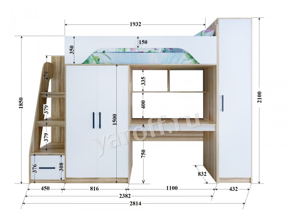 Размер кровати Д*Г*В: 2814*832*2100 мм. Цена 33090 руб