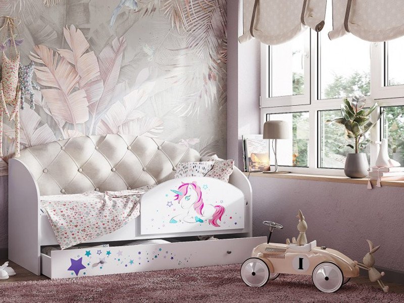 Материал: ЛДСП, спинка кровати обтянутая мягкой тканью велюр