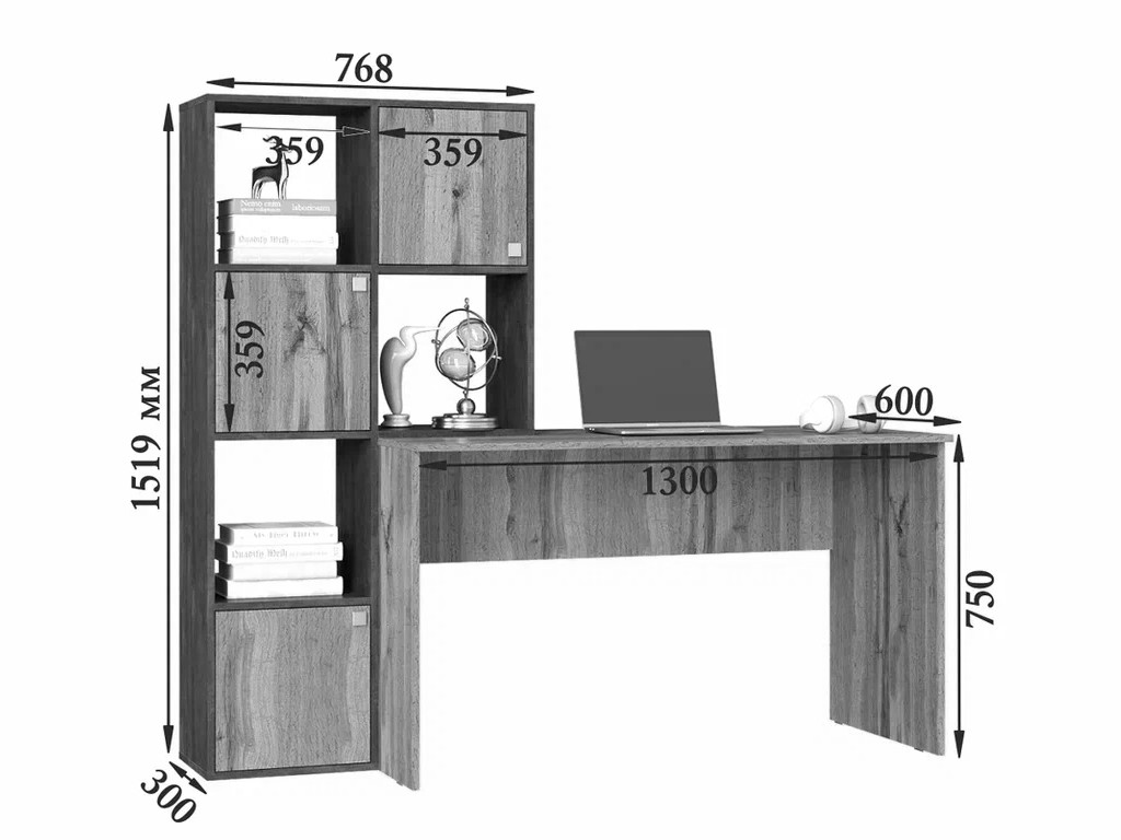 - Стол компьютерный СК Юджин дуб крафт белый/цемент светлый