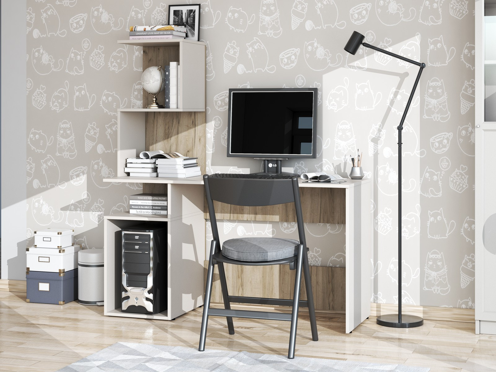 Цветовая гамма: Корпус - Дуб Крафт серый Фасад ЛДСП - Кашемир 5981 BS