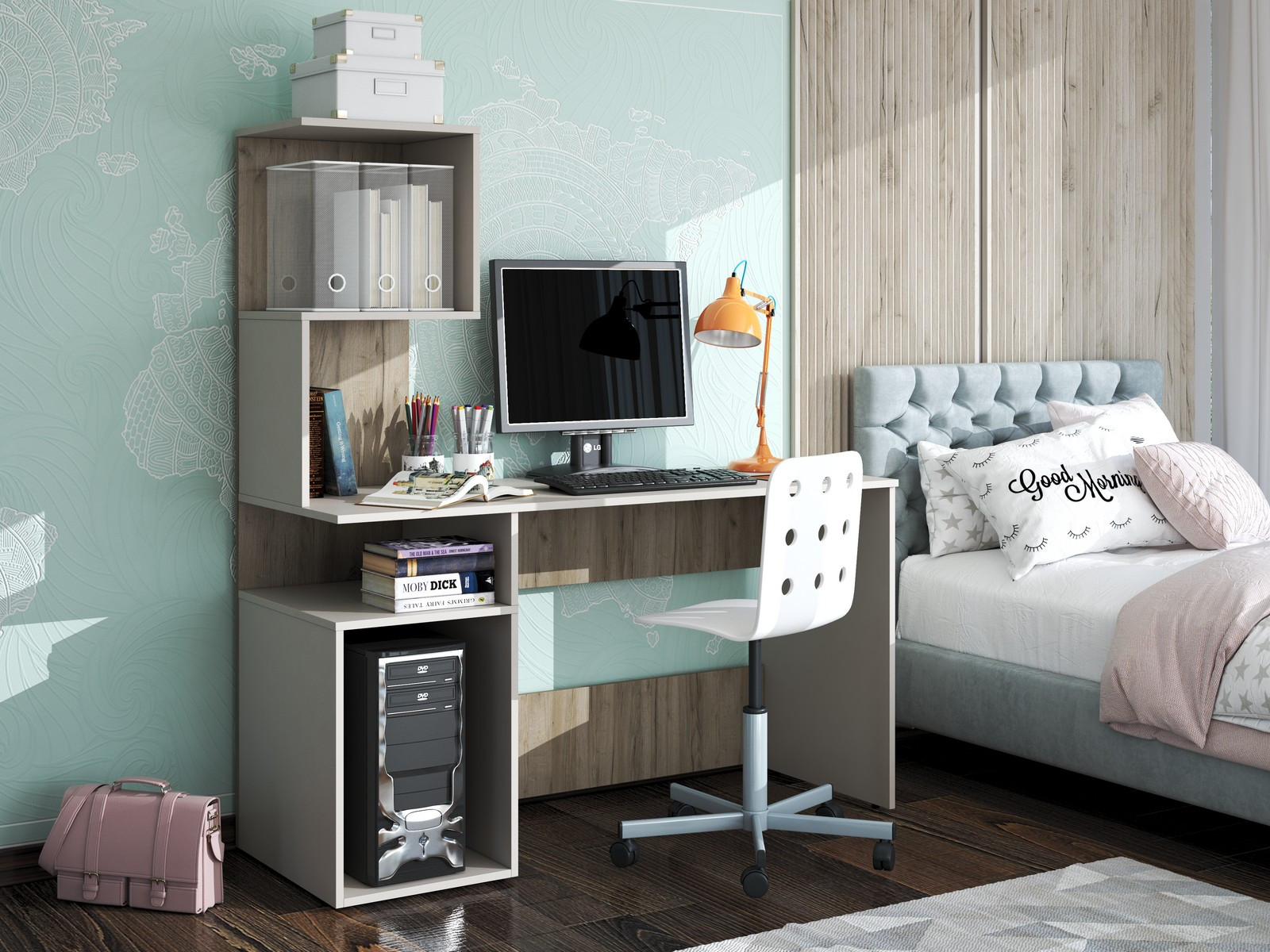 1. Блок с полками. Состоит из одного щита, на который крепится блок из полок и открытой ниши под столешницей письменного стола.