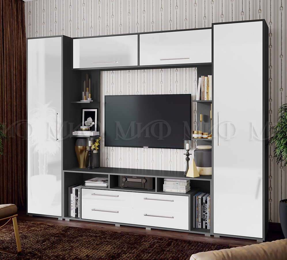 Гостиная Гармония Белый Глянец, графит