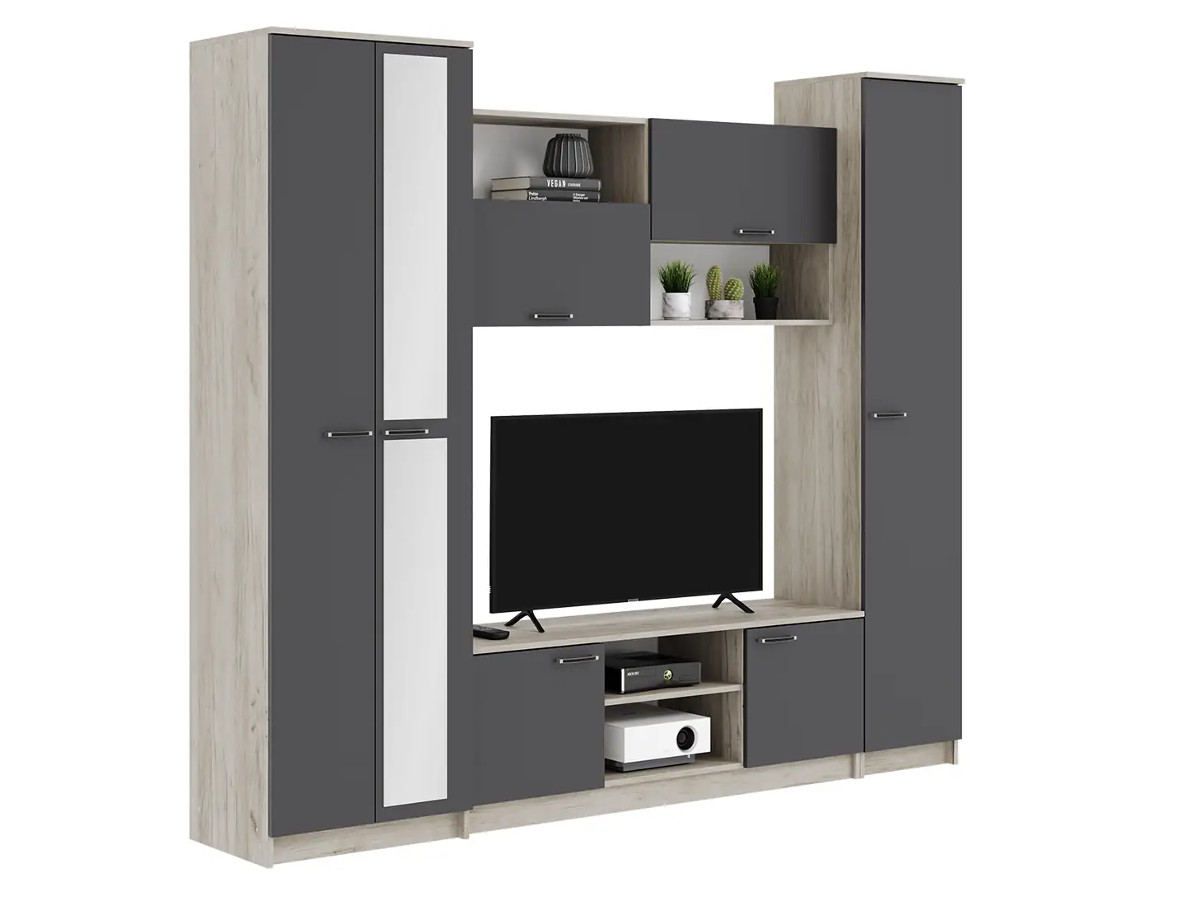 Гостиная состоит из бельевого шкафа, средней секции и платяного шкафа