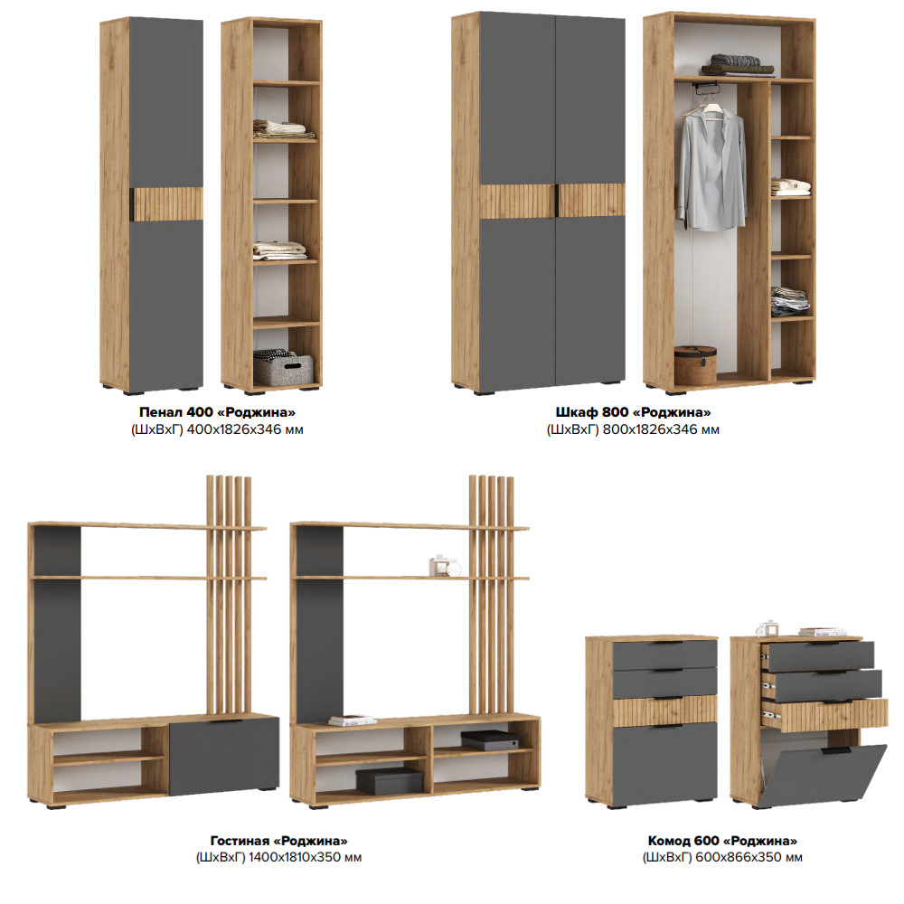 Гостиная модульная Роджина Дуб Крафт Белый, Графит