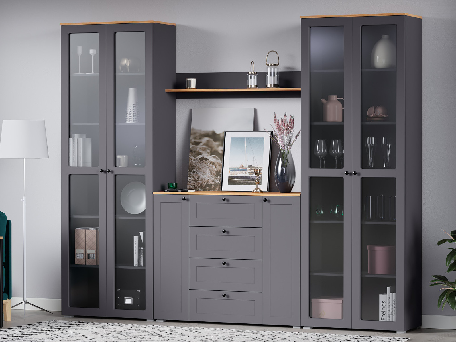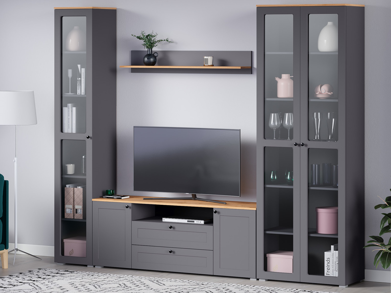 Цена указана за комплект: Полка 16.484, Тумба под ТВ 16.47, Шкаф-витрина 16.394.02, Шкаф-витрина 16.394.03