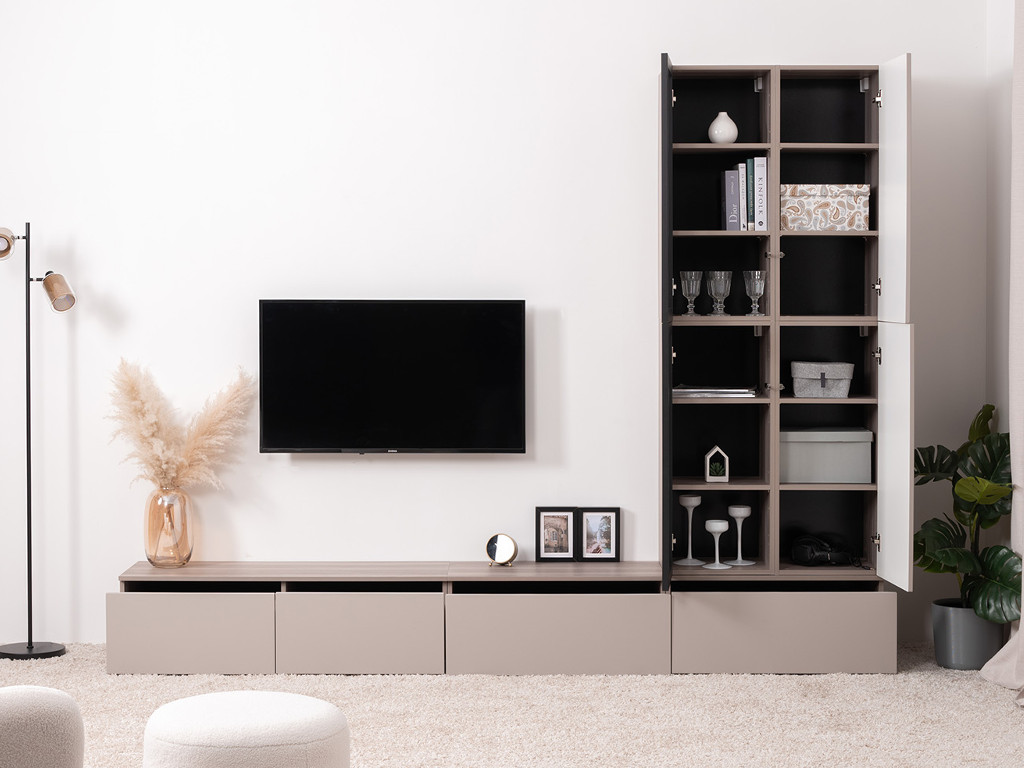 Цена за комплект: Тумба под ТВ 16.54.01 (2 шт), Тумба под ТВ 16.54.02, Шкаф навесной 16.322.01 (2 шт), Шкаф-витрина навесной 16.322.02(2 шт)